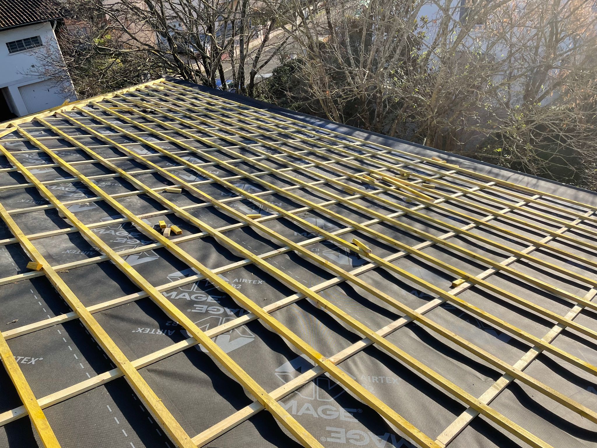 Nous installons des isolants minces réflecteurs directement sous la charpente, sans réduire l’espace sous toit. Ce procédé comprend la fixation précise des couches isolantes, l’étanchéification au vent et la mise en place d’une ventilation adaptée. Cette méthode est idéale pour les rénovations où l’espace est limité, offrant une isolation thermique efficace tout en protégeant la charpente contre l’humidité.